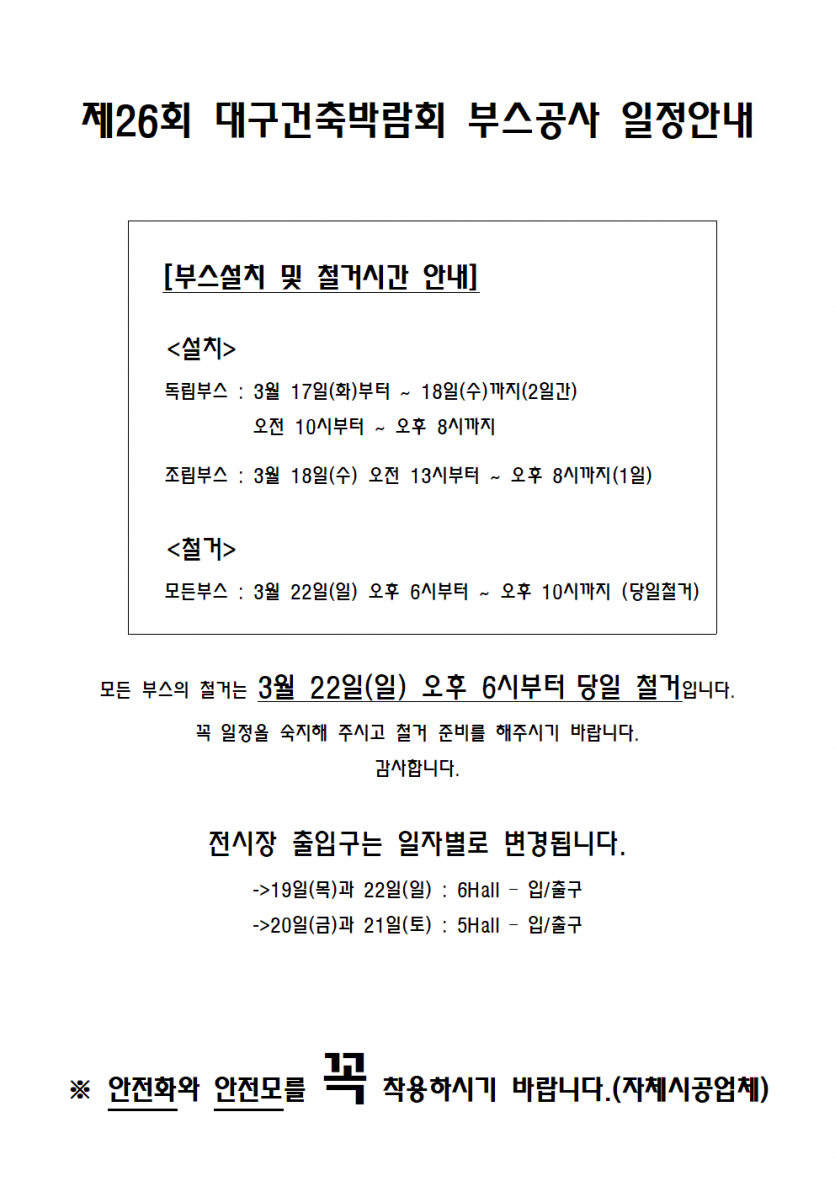 제26회 대구건축박람회 독립부스 및 조립부스 장치공사 일정 안내
