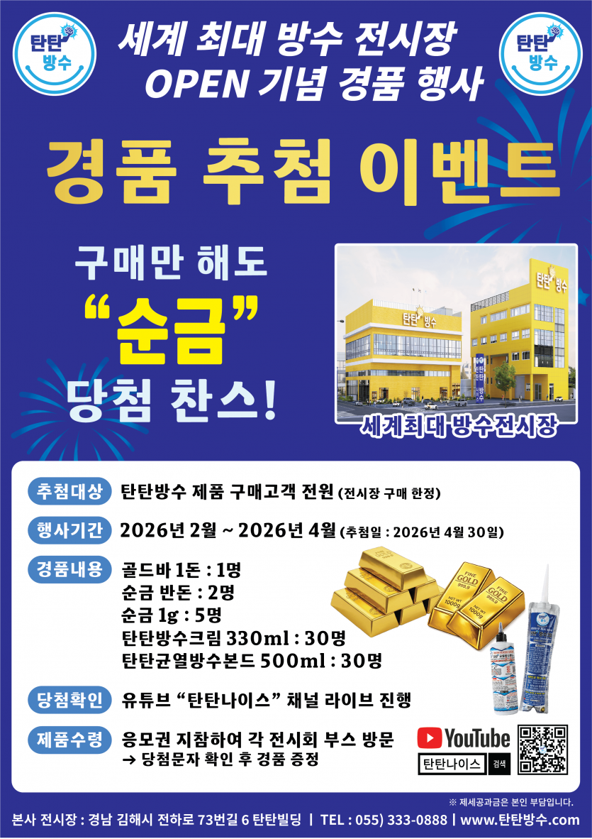 참가업체(탄탄방수: 부스번호 A16) 경품 추첨 이벤트 안내